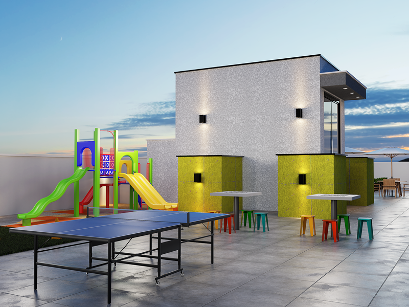 O Pinalle conta com elevador, medidores individuais de água, luz e gás, vagas de garagem, sacada com churrasqueira nos apartamentos e um rooftop com espaço ao ar livre para adultos e crianças.