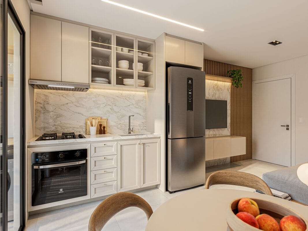 O Portinari Residencial conta com salão de festas coberto, academia e bicicletário, além de um rooftop completo com uma vista incrível da cidade de Pinhais.